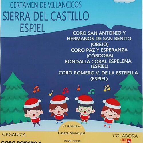 Disfruta del XXII Certamen de Villancicos Sierra del Castillo en Espiel el 21 de diciembre. Participan el Coro San Antonio y Hermanos de San Benito, Coro Paz y Esperanza, Rondalla Coral Espeleña y Coro Romero Virgen de la Estrella. ¡Vive la Navidad Espeleña!